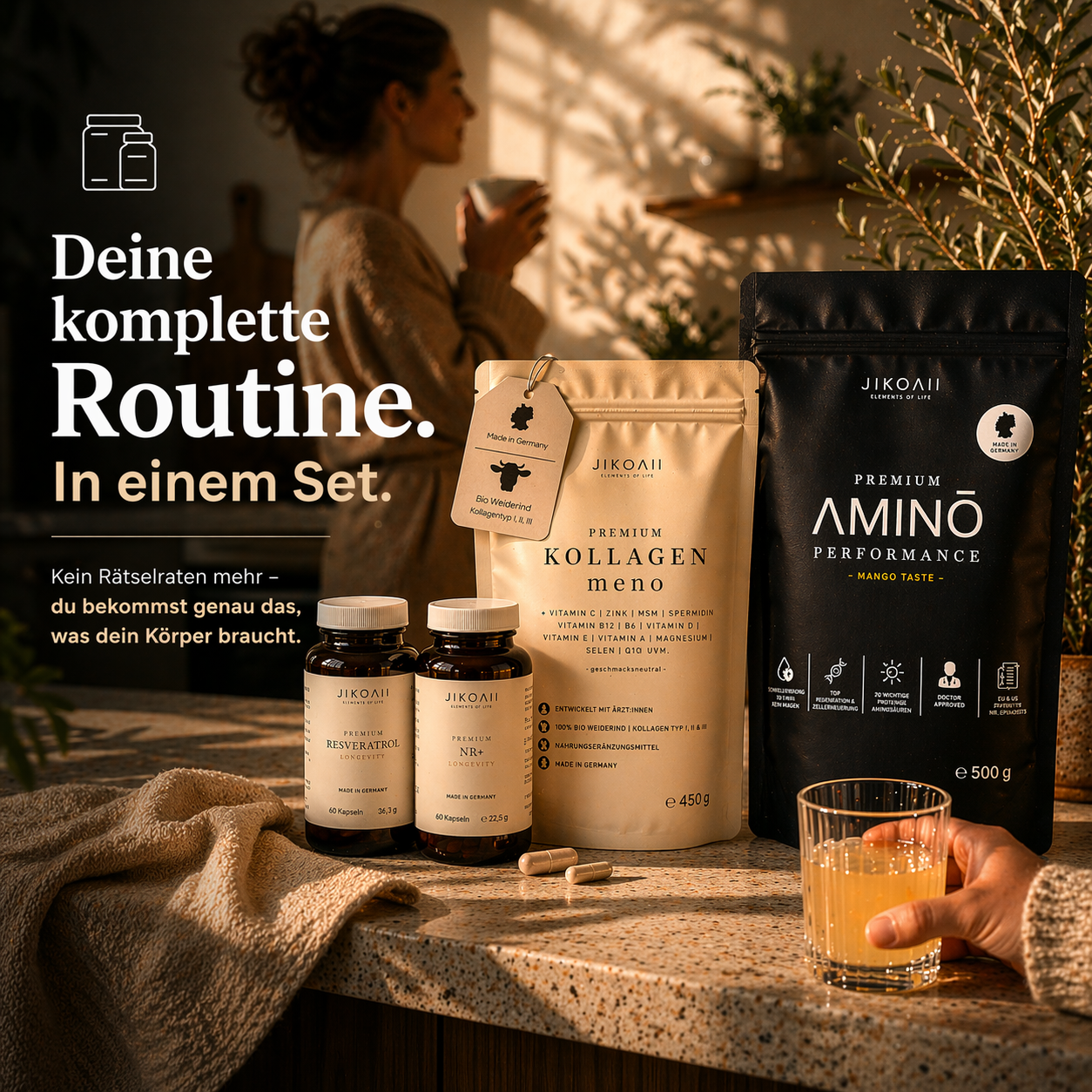 JIKOAII wurde von Janine & Steve gegründet – inspiriert durch persönliche Herausforderungen und den Wunsch nach hochwertigen, ehrlichen Lösungen. Aus dieser Erfahrung heraus entstehen Produkte, die bewusst entwickelt wurden und auf Qualität, Verantwortung und Vertrauen setzen.